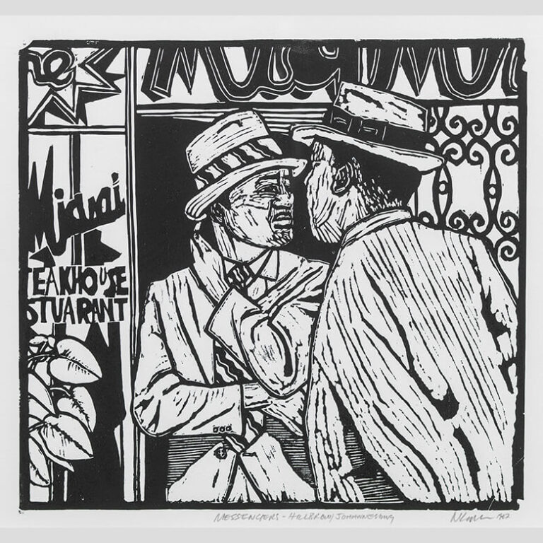 His linocut, Bill of Rights, was awarded the first prize honour and along with All Shall Be Afforded Dignity is engraved into a window in South Africa’s Constitutional Court, on permanent display.