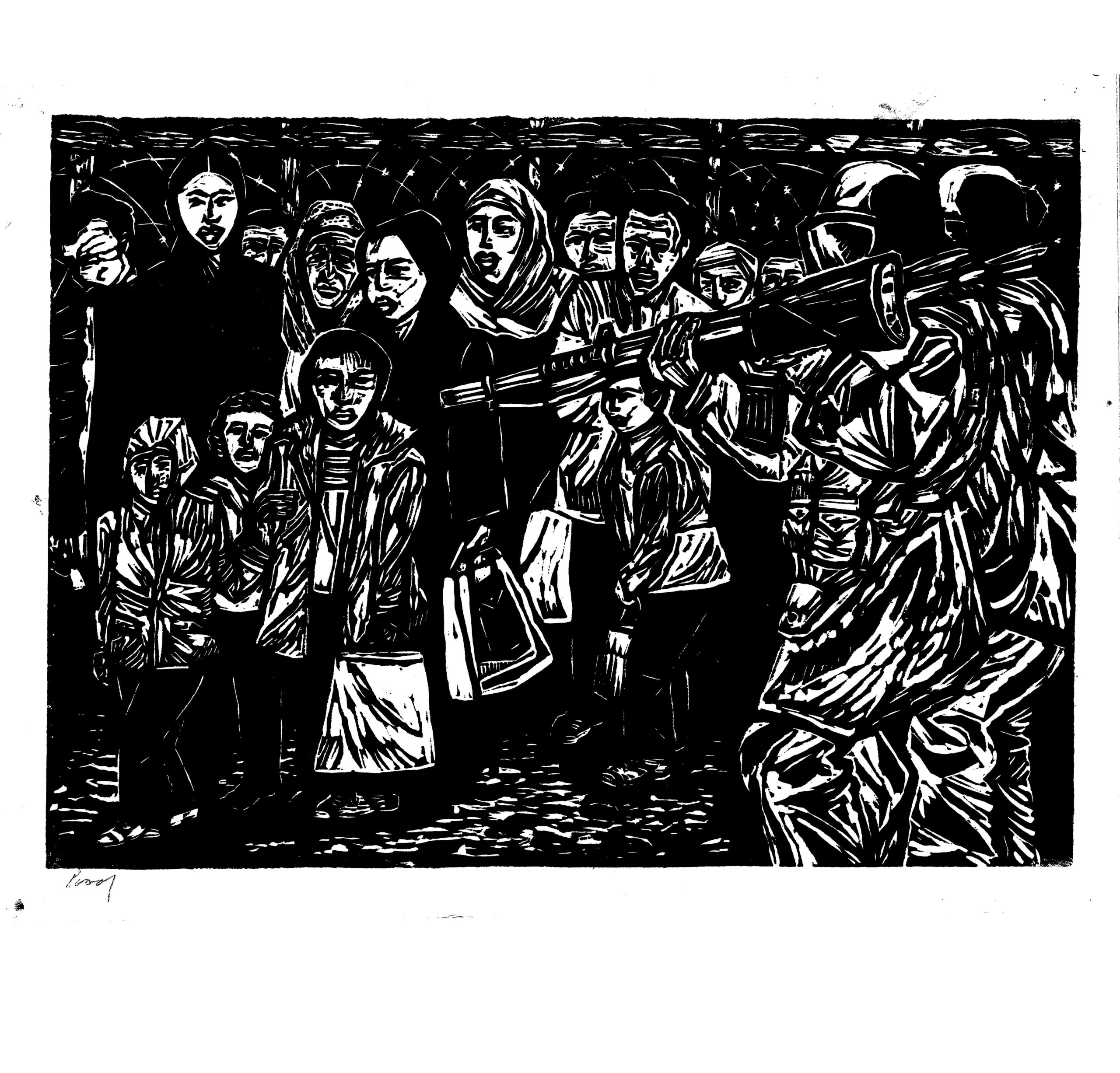 ‘All Shall Be Afforded Dignity!’ is a travelling exhibition that has been visited by over 15,000 people in nine locations across the UK in the last 18 months. For the first time in this iteration of ‘All Shall Be Afforded Dignity!’, a selection of Norman Kaplan’s recent linocuts is presented publicly. These new works turn to Palestinian land and people, foregrounding the realities of colonial dispossession alongside expressions of determination and resilience.