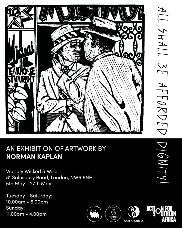 ‘Norman Kaplan: All Shall be Afforded Dignity!’ has been organised and presented for display by the Anti-Apartheid Movement Archives, Action for Southern Africa, and the Anti-Apartheid Legacy Centre